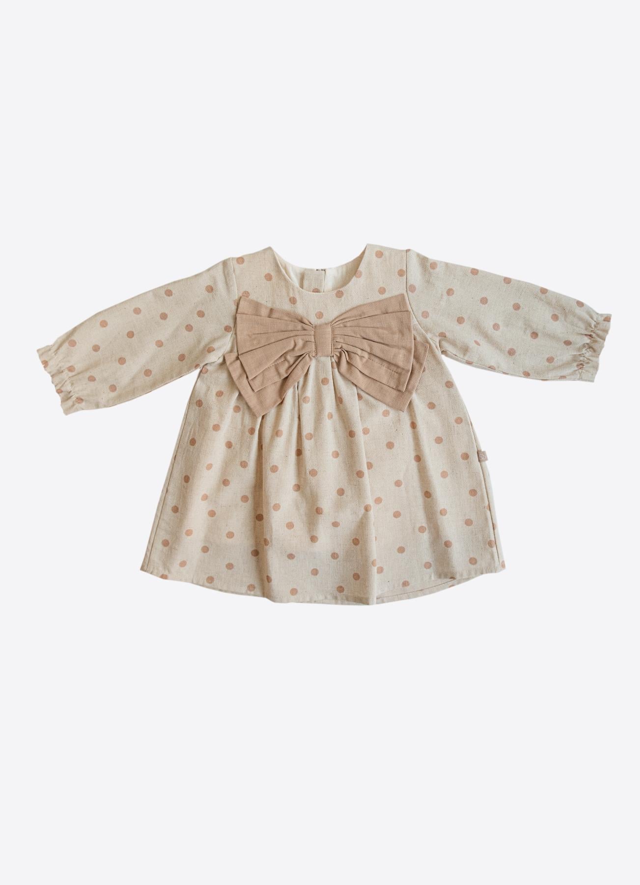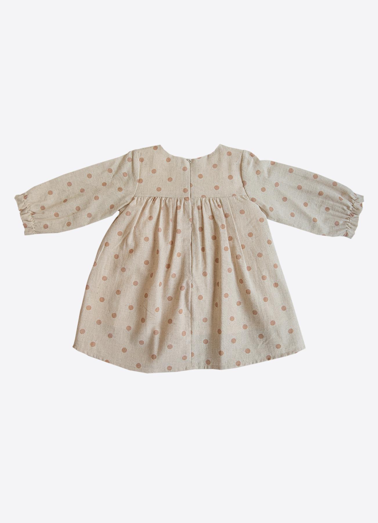 Doğal keten kumaşı sayesinde nefes alır, hafif yapısıyla miniklere gün boyu konfor sağlar. Yumuşak dokusu ve zarif deseniyle hem günlük hem özel anlar için ideal bir kız elbisesidir 🤍