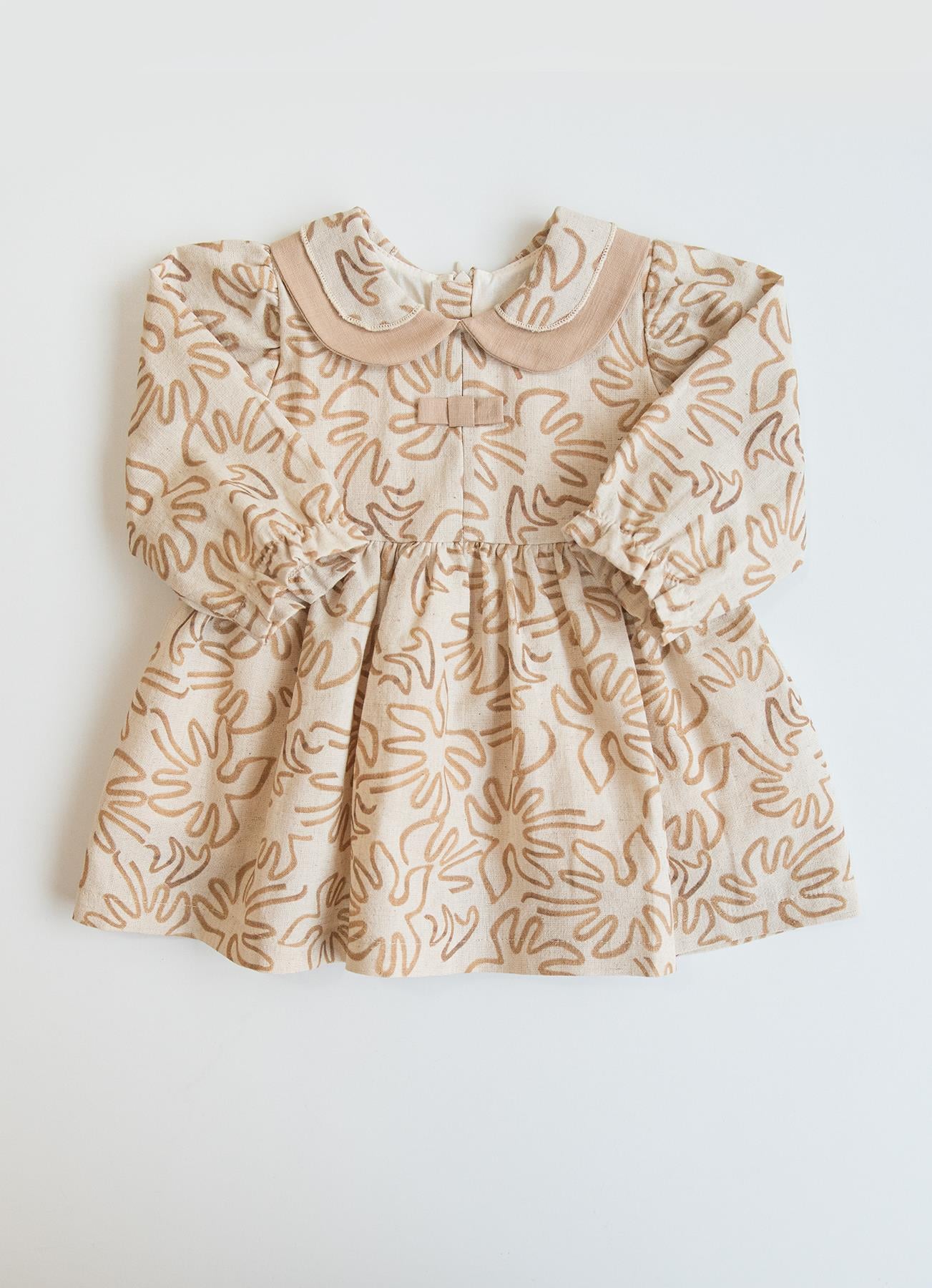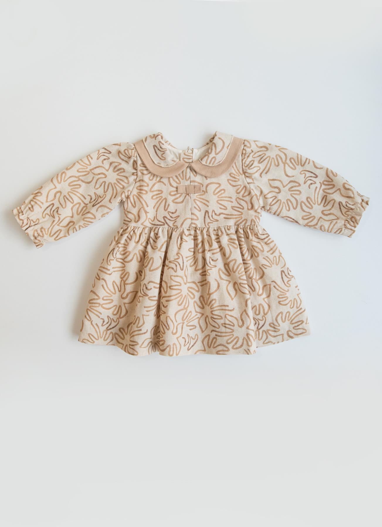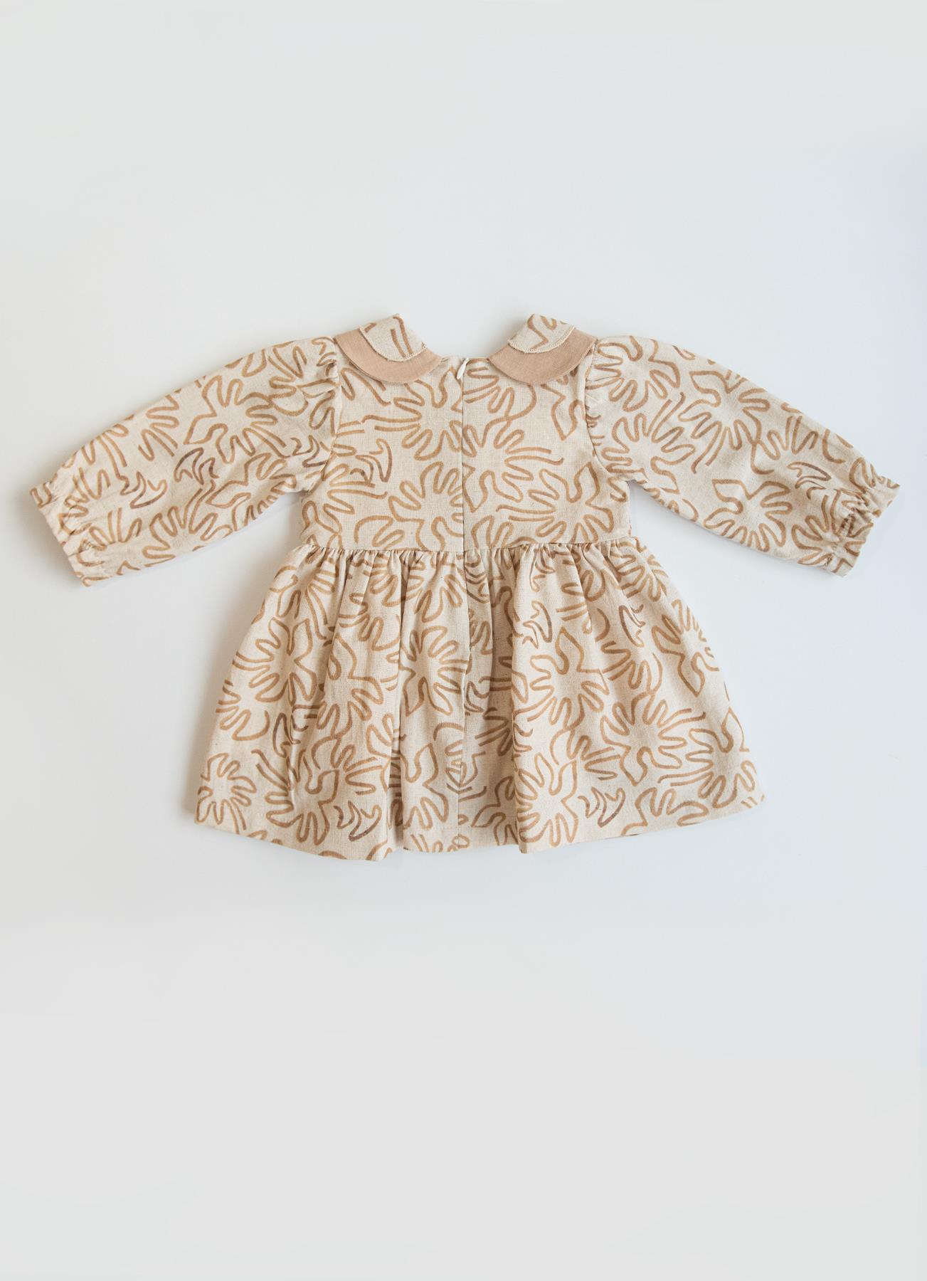 Doğal keten kumaşı sayesinde nefes alır, hafif yapısıyla miniklere gün boyu konfor sağlar. Yumuşak dokusu ve zarif deseniyle hem günlük hem özel anlar için ideal bir kız elbisesidir 🤍